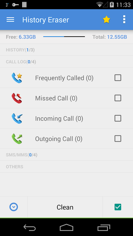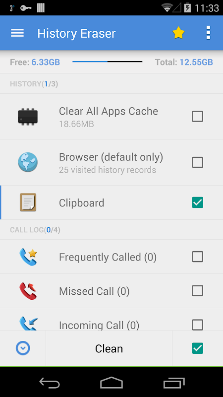 History Eraser te permite seleccionar qué tipo de historial deseas eliminar. Puedes elegir borrar todo el historial o solo ciertas categorías, como el historial de navegación o los registros de llamadas.